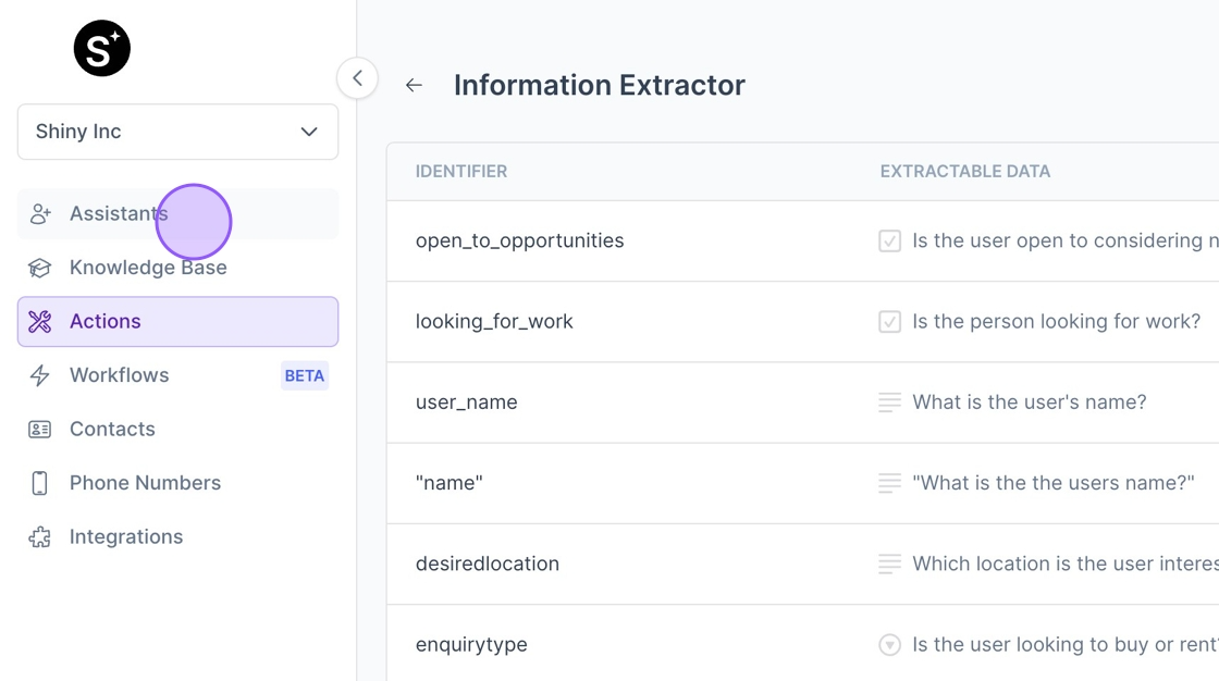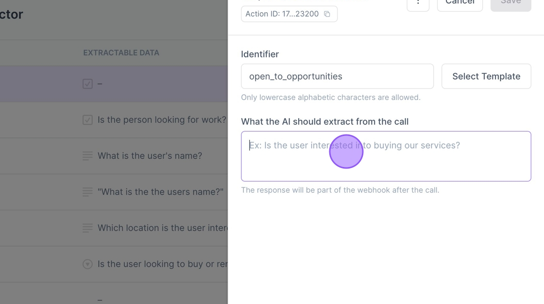 9. Next we want to let the AI know what it should extract from the call. Make this as simple as possible.