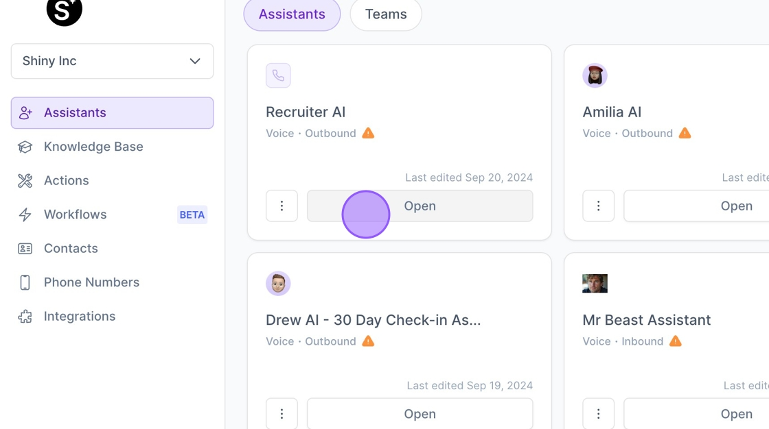 1. To start, open up an Assistant that you want to use.