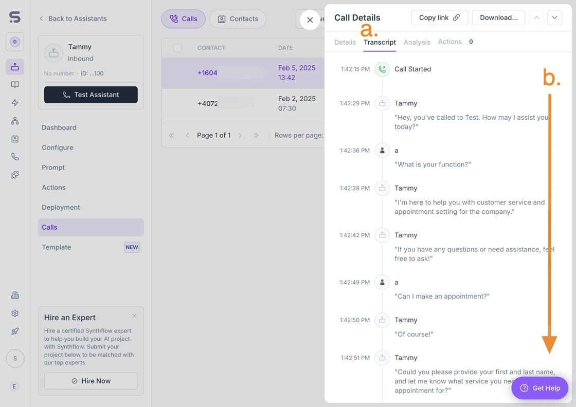 Synthflow AI provides multiple ways to review and analyze your Assistant’s calls: