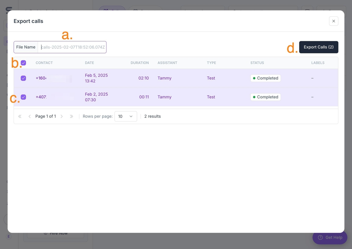 d. Once calls are selected, click Export Calls.