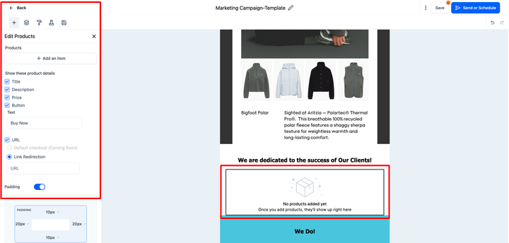 Email Campaign now dazzles with the ability to showcase your amazing products! Get ready to captivate your audience like never before!