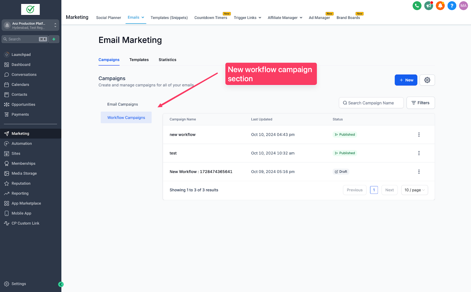 Go to Email Marketing -> Campaigns -> Workflow Campaigns.
