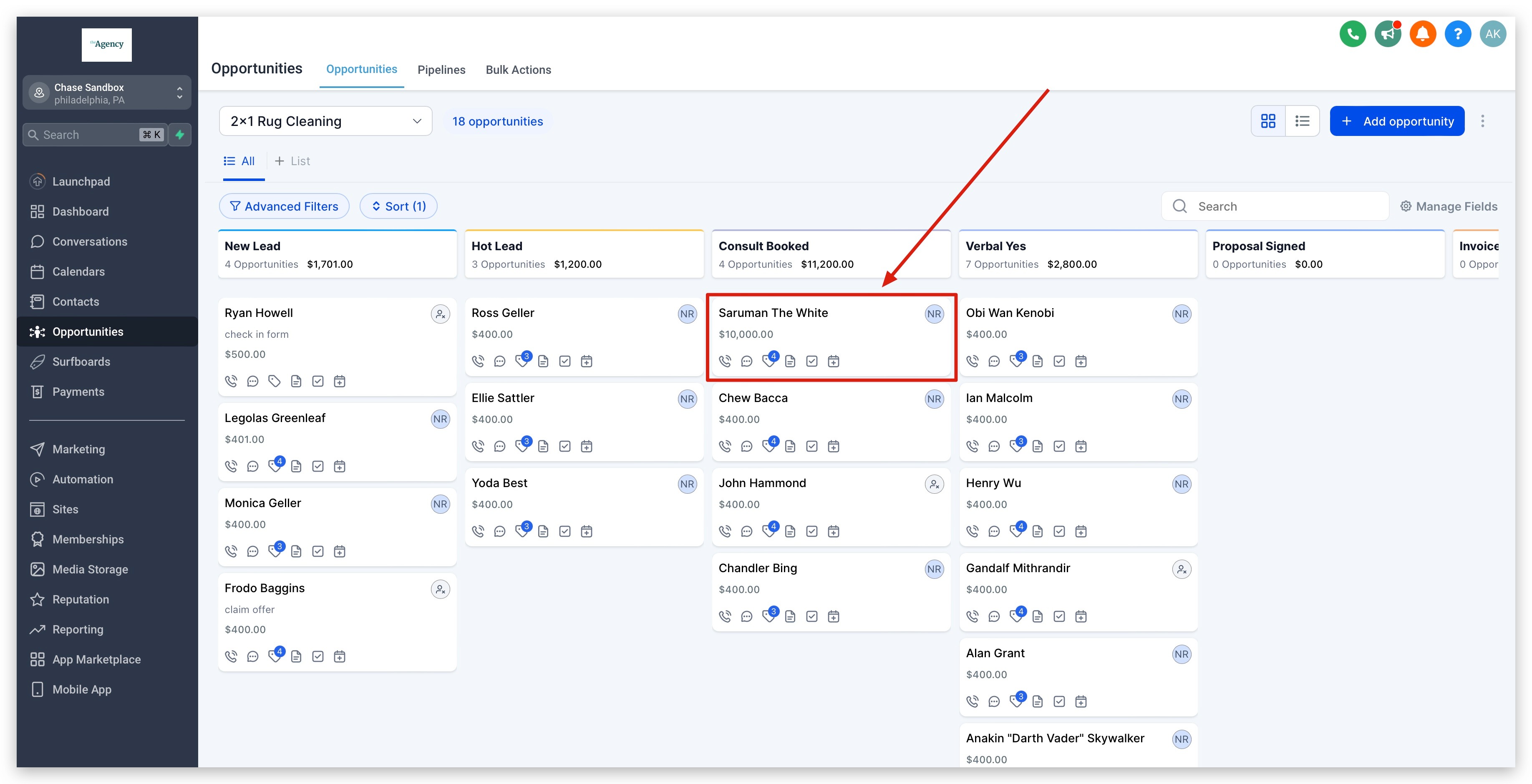 Once you're in the Opportunities section, locate the opportunity whose status you wish to update. You can use search filters or browse through the list of opportunities to find the specific one you need to modify.