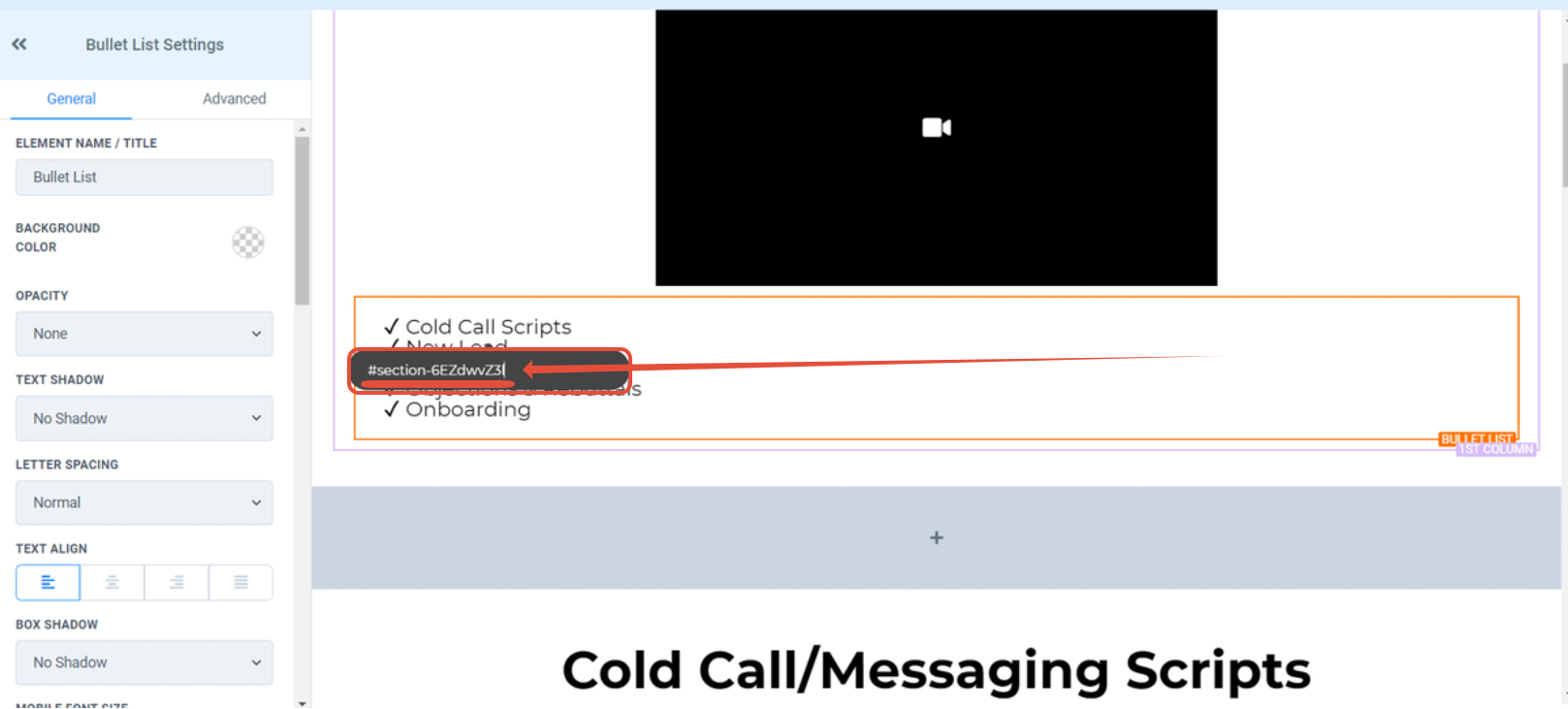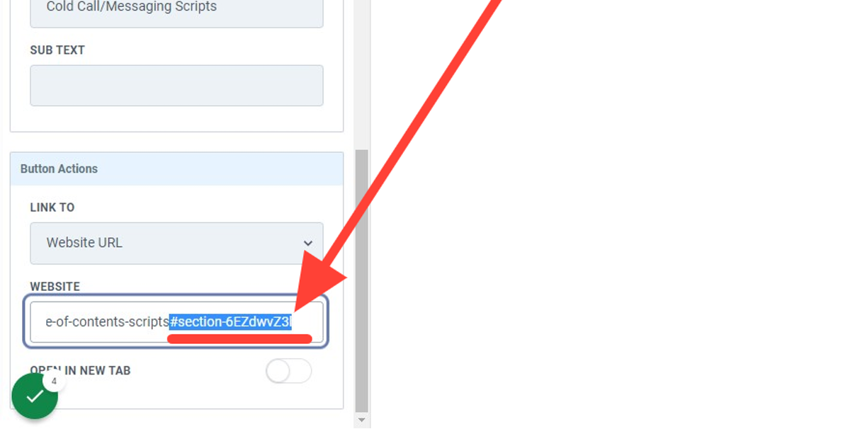 - In order to anchor/ scroll to a section in another funnel/website page please use the page URL with the CSS selector ID appended at the end: