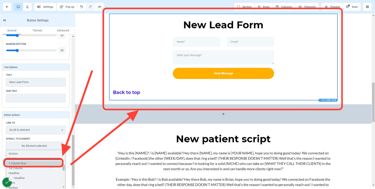 Ideal for linking sections within the same funnel page. Please select "Scroll to element" option in the field below and select the section within the page you wish to anchor/ scroll too.
