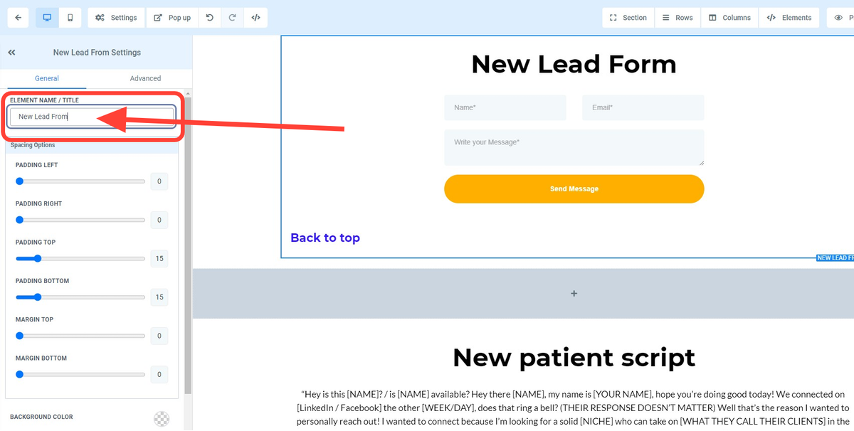 The titles in the dropdown menu are auto generated element names. If you would like to label your sections see Step 5 below.