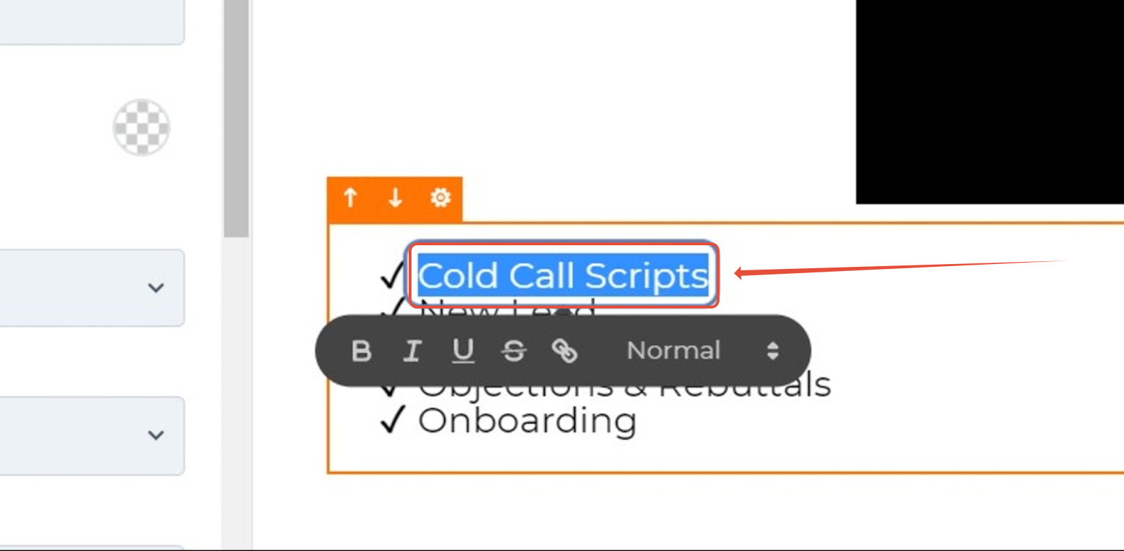 1. Drag highlighted text you wish to link your section too.