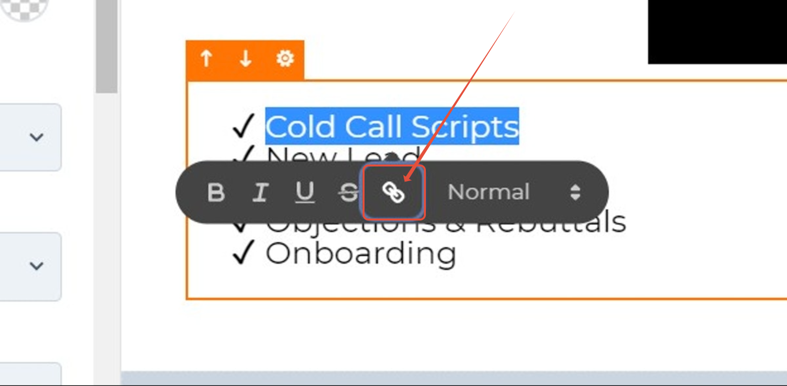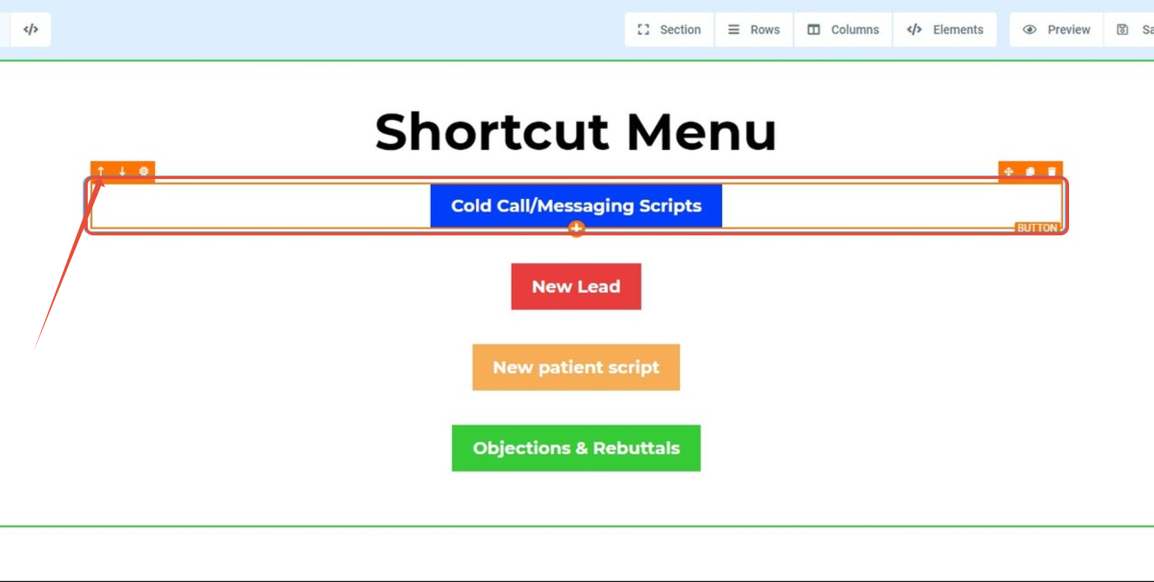 1. Click on the button you wish to link a section too