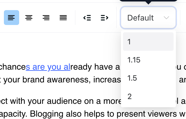 User can align the text to right, left, centre and text justify. They can also set the text indent and outdent. User can also define the spacing between the words from 1, 1.15, 1.5 and 2.