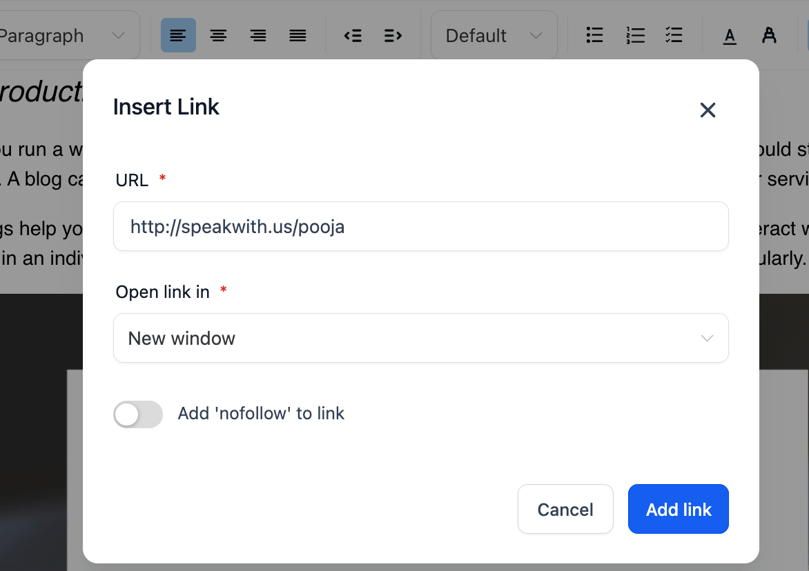 There is option to select the word to add the links. If the user wants to edit the link, they should select the same and it will allow them to edit the link.